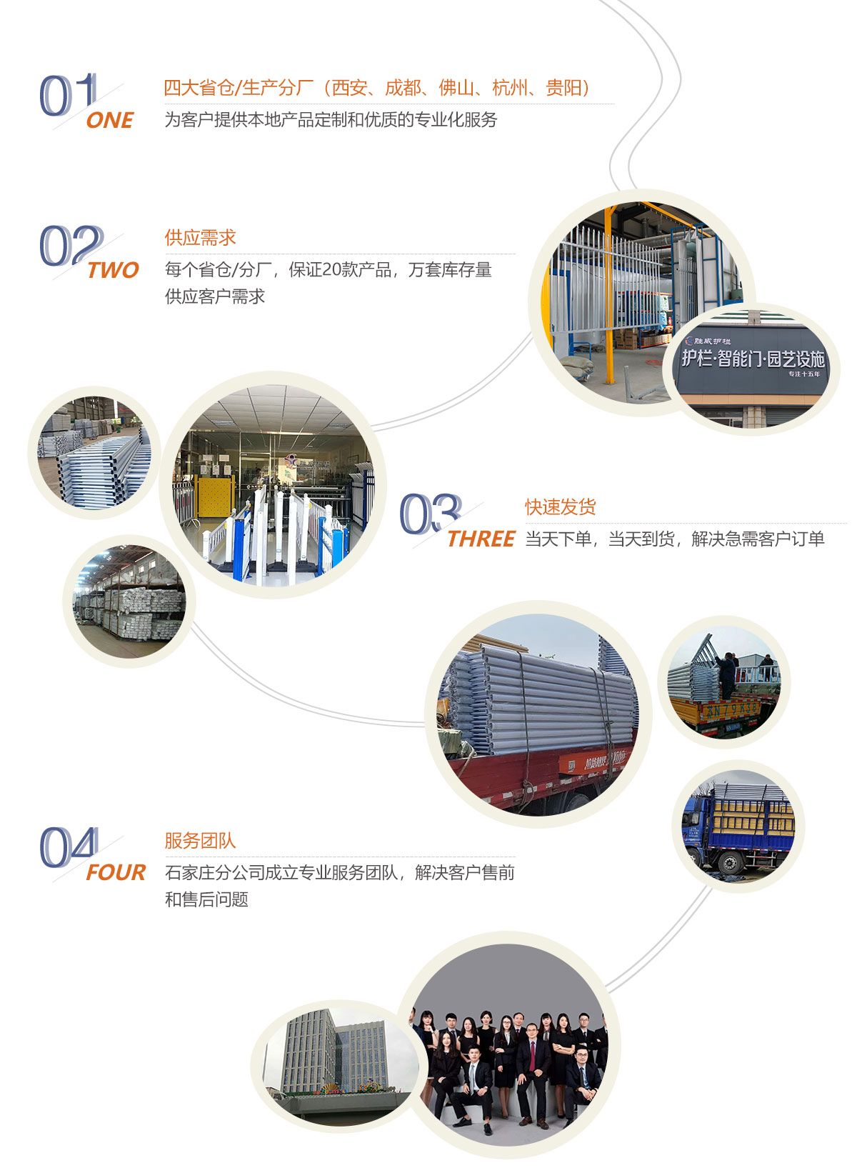 安平縣勝威金屬絲網(wǎng)制造有限公司創(chuàng)始于2005年,是防護柵欄市場的主要供應(yīng)商之一,主要生產(chǎn)市政類,鋅鋼類,圍墻類,草坪類等?!鞍踩?、時尚、靠譜”是勝威的做事理念。公司堅持“以用戶為中心,為員工伙伴提供機會”為使命。